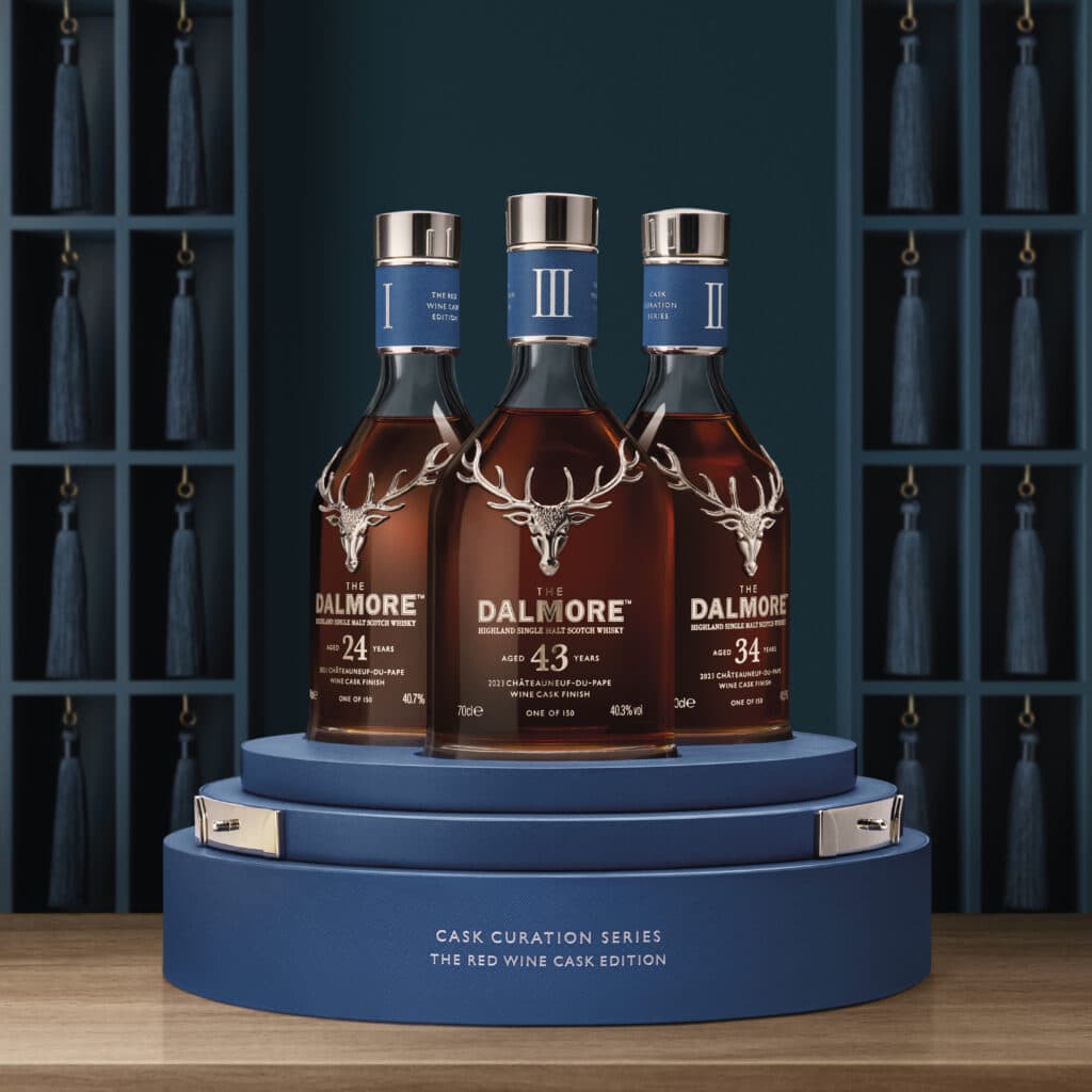 To add further intrigue and expertise, The Dalmore chose to use the same 2023 Château Mont-Redon red wine casks to finish each of the three whiskies which comprise the set, creating the opportunity to clearly showcase how flavour, imparted from these special casks, can embolden The Dalmore’s spirit and signature house style, at three different ages – 24, 34 and 43 Years Old.